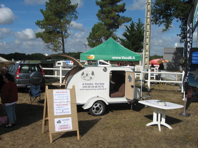 notre stand avec le Teardrop de moins 500 kg !! et voilà un grand Teardrop nommé Airstream (+ de 2T)